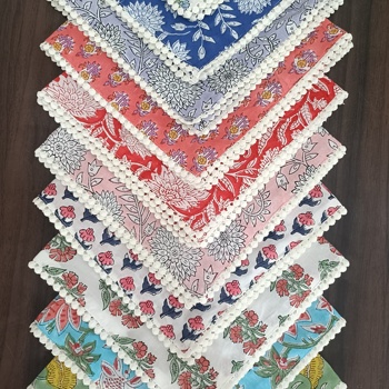 100% algodón hecho a mano bloque impreso servilleta conjunto Pom Trim encaje surtido servilleta mezcla partido para servilletas de tela de boda Accesorios