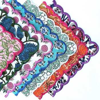 Servilletas florales de estilo indio hechas a mano, 18x18 '20x20', tamaños personalizados, estampado de bloques, tela de algodón, bordado festoneado personalizado