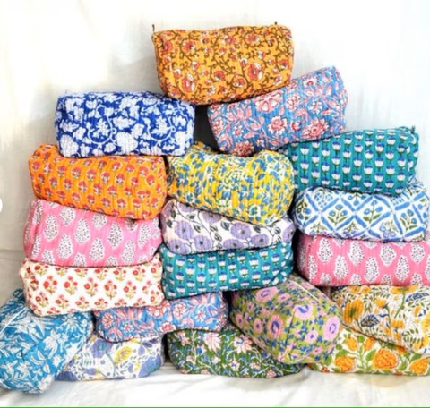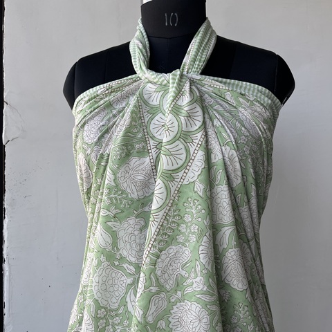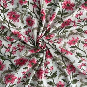 Lotus Pink, Green Floral Indian Hand Block Printed
