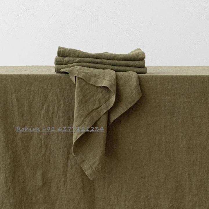 Napkins, Sage Green Handmade Indian Striped Cotton